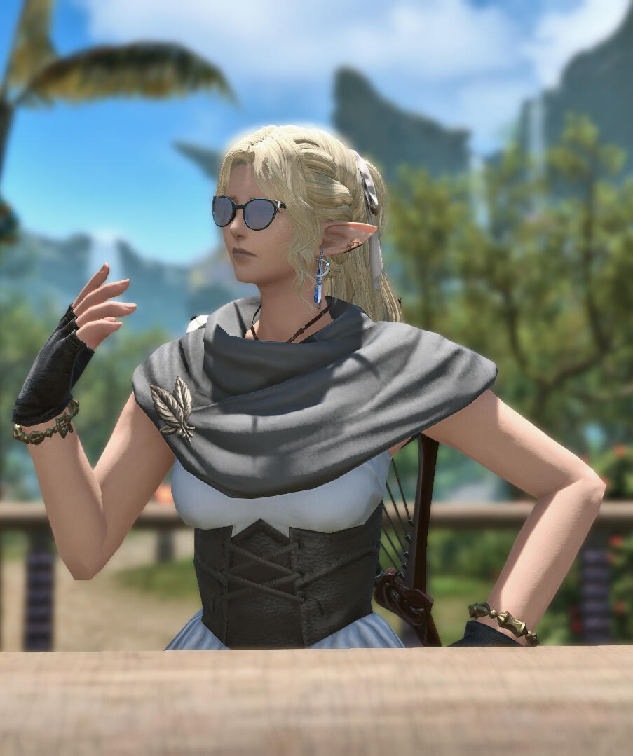 Born to a noble house in the city of Ishgard slightly before the calamity (under the assumption of a slightly longer time-bubble as of Dawntrail), Elorraine's family was- at the time of her birth a rather unremarkable house- barely eeking out a standing amongst the city's nobility. In the wake of the Calamity, their fates changed when Elorraine's older brother won fame and fortune for the house- acheiving a position of importance amongst the ranks of the Archbishop's personal guard.Elorraine was expected to follow in her brother's footsteps- as a knight of the house who would take to the field of battle against the Dravanian hordes. However the young elezen had no interest in warfare, nor any talent for it. Instead, they preferred to spend their time attending balls, galivanting about the Jeweled Croizer, and studying music and the arts. This, along with the young elezen's nature struggling against the gender norms of Ishgard caused no small amount of strife amongst their family. As a young teenager, they had aspirations to seek tutelage in the healing arts- hoping to learn magic as such craft interested them far more than holding a lance. They were instead shipped off to Camp Dragonhead kicking and screaming- in order to be 'properly trained'. Elorraine did not last even a week at the camp before she absconded with the help of a sympathetic dragoon and the assistance of her brother, who would continue to provide Elorraine with a stipend of gil until his death in the Dragonsong.Travelling to Gridania- she would use her skills as a bard and painter to make additional gil, and ended up falling in with a circle of adventuring artists and creatives, and setting off on trips across Eorzea. During this time, she would also make friends with the moogles of Thornmarch, who took to Elorraine's free spirit and pure heart. The moogles would tutor the young elezen in magic- teaching her how to apply her aether to her muses of art and music. And she would repay their kindness in full- assisting in the quelling of King Moggle Mog XIV's summoning, and travelling as an intermediary with the Seedseers in the diplomatic mission from Thornmarch to Moghome to better forge ties between the moogle tribes.With her brother's death in the Dragonsong, Elorraine's stipend of gil, which she has so carelessly spent on frivolities has run dry- forcing Elorraine to expand her search for employment by working at various venues. Eventually, she accumulated enough gil that with the help of some close comrades and the moogles she would open up a venue of her own.